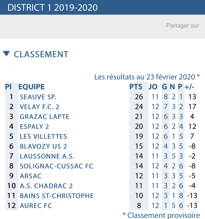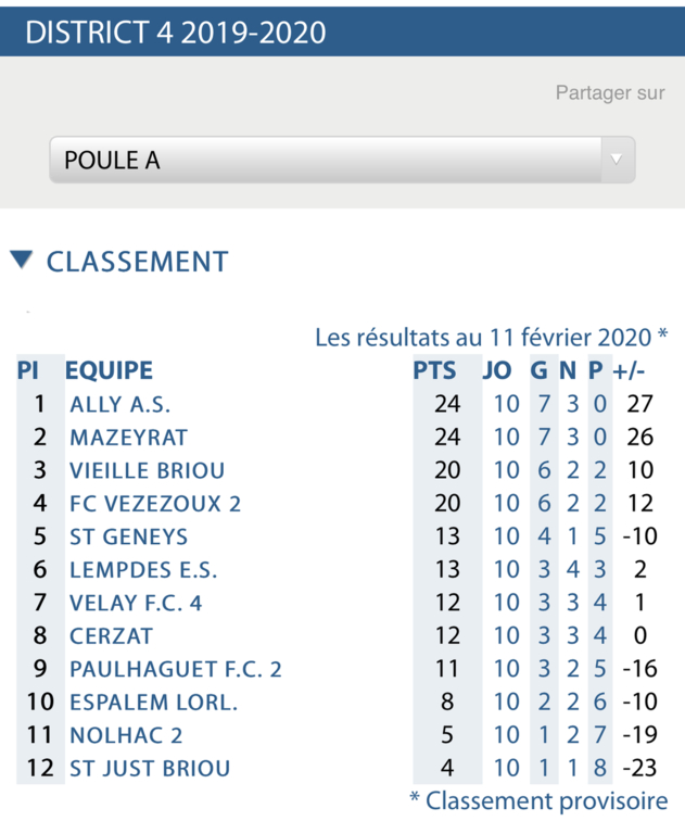 Classement au 20 octobre